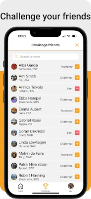 Participate in Private challenges with your friends, Group challenges with your club, company, or similar, and Global challenges with everyone in the app. Or challenge yourself only.