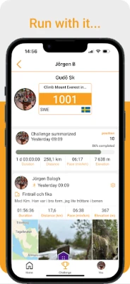 Run, climb, cross-country ski, ski mountaineer, cycle, swim, and more, and sync Heyey with training data from other apps and devices or manually record your activities. In HeyEy, you create and participate in various individual or collective challenges, competitions, and training goals based on time, distance, or elevation gain or a combination of all.