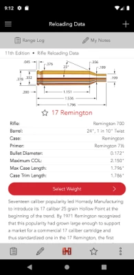 Derived from extensive testing by Hornady Manufacturing Company, this app includes reloading data for over 200 cartridges and 300 bullets. Under carefully controlled conditions using the components and test equipment specified, we report only data that proved safe in our research. Users have the ability to purchase data for individual cartridges, purchase the whole current edition of the handbook, or subscribe and receive the entire handbook plus more. Subscription provides access to all handbook data on your mobile device and real updates for all new data without waiting for the new handbook publication to be produced.