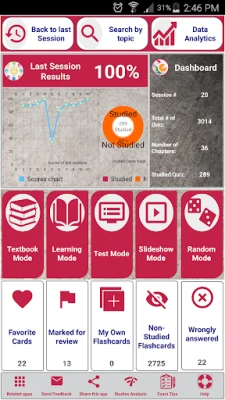 - Get the most advanced data analytics features that analyses your study session by study mode, scores, time spent…etc.
