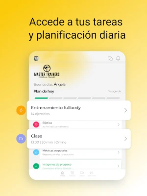 • Recordatorios y Notificaciones: Nunca te pierdas una sesión de entrenamiento con recordatorios personalizados y notificaciones push.