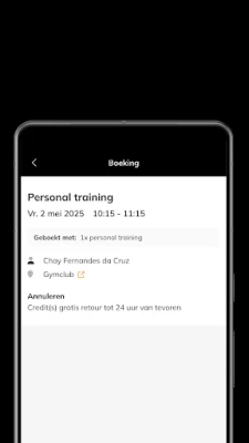 - Aanmelden bij ons - Inplannen van trainingen - Beheren van je boekingen - Communiceren met ons - Beheren van je profiel en voorkeuren - Push notificaties over wijzigingen van de training - Synchroniseren van de agenda