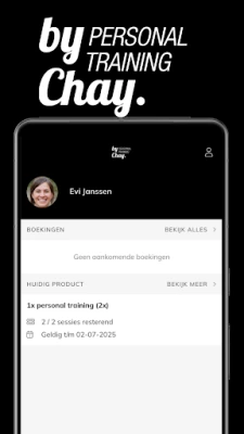 Download de PTbyChay app met de volgende functionaliteiten: