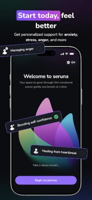 Seruna is your personal mood & emotion coach with 5-minute daily sessions that turn science-backed tools (CBT, mindfulness, habit design) into simple, actionable steps. Follow tracks → milestones → steps to build real skills without overwhelm.