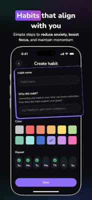 * Habits: tiny, repeatable actions with reminders and streaks