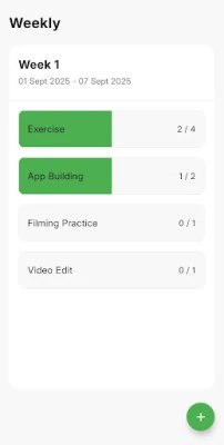 Consistency is the key to building habits. Weekly helps you stay on track by giving you a clear view of your progress. Whether you want to exercise regularly, read more books, meditate, stay on a diet, or study every week, Weekly makes it simple to plan and follow through.